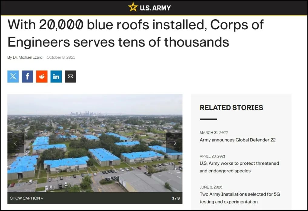 而另外2个把柄则来自媒体。其一是一家中国媒体2014年的一篇著作,本色是先容贵阳的住户给屋顶贴防水布料理雨水渗漏问题。另一个则是好意思国《陆军时报》2021年的报谈,讲的是好意思军为官兵拓荒了新营房。