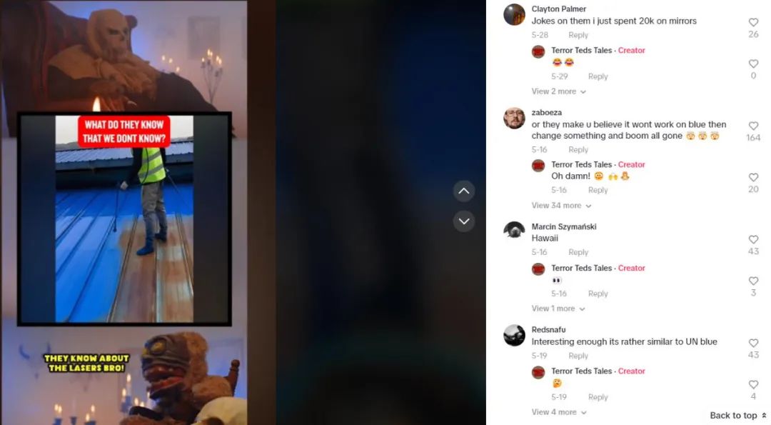 这些关联“蓝色屋顶防激光”的计算论视频,播放量动辄在数万乃至数十万以上,一个对这些传言敬佩不疑的好意思国网民称,我方也曾将自家屋顶刷成了蓝色。